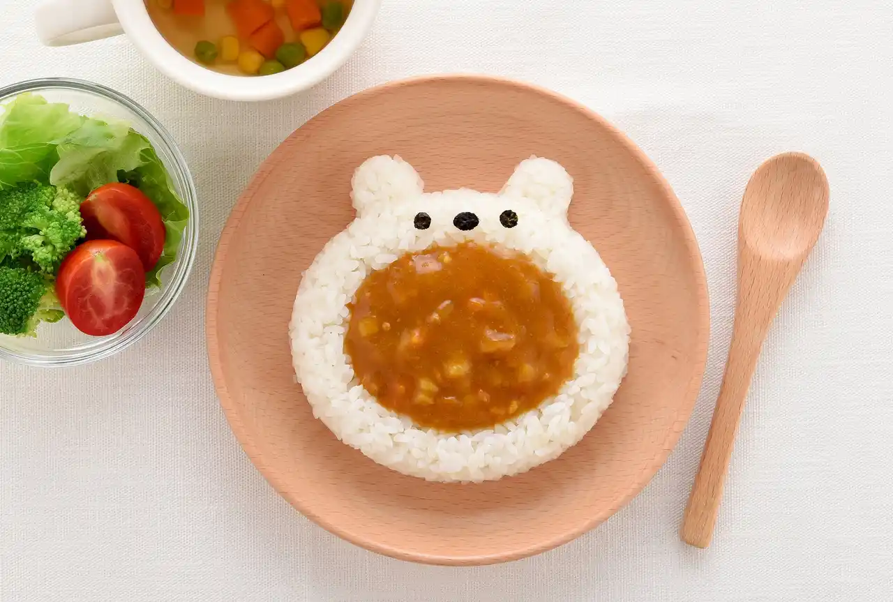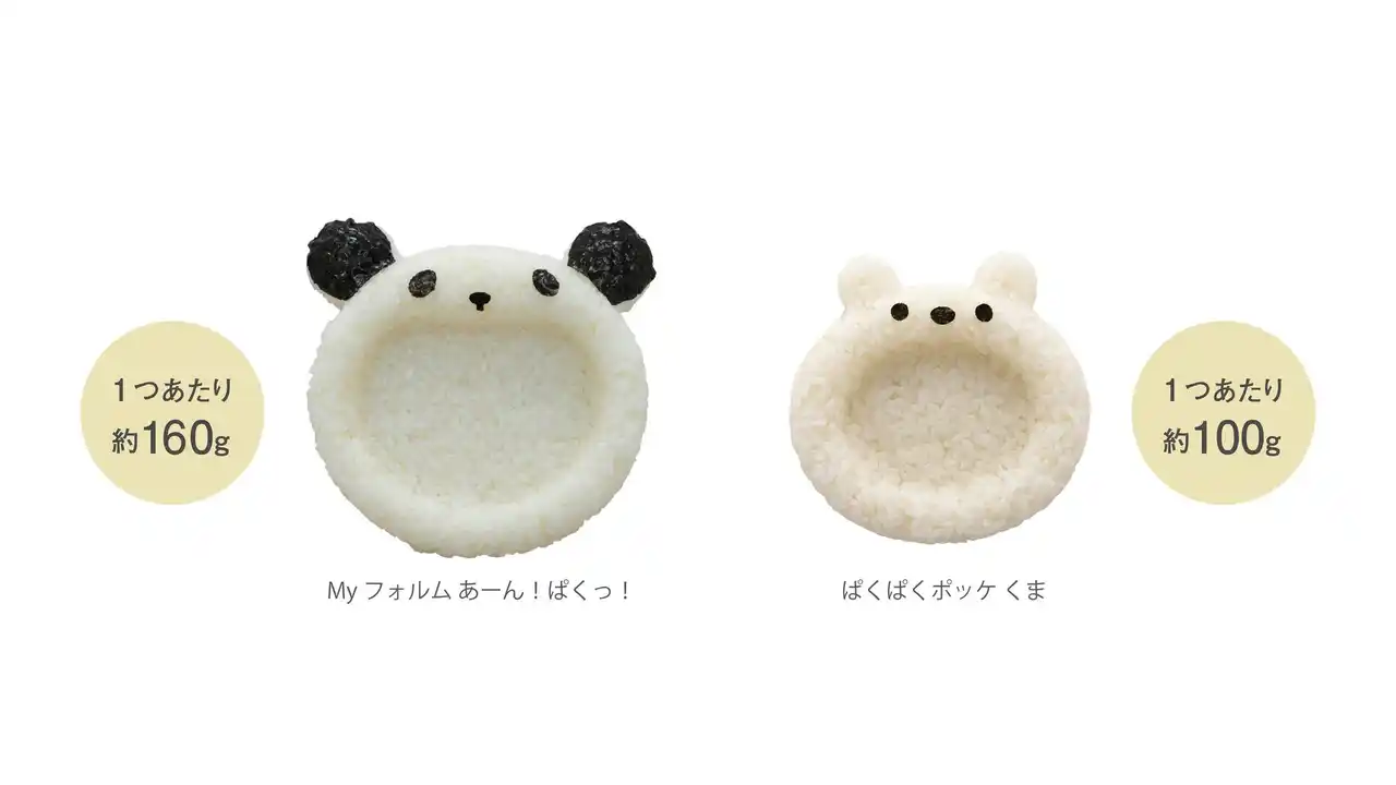 元々当社には「myフォルム あーん!ぱくっ!」というお皿型のご飯を作れるアイテムがあり、ご好評をいただいているのですが、ご飯の量が160gと小さなお子さんには少し多いというお声をいただきました。そこで、ご飯の量を100gにした食べやすい「ぱくぱくポッケ くま」が誕生しました。 |