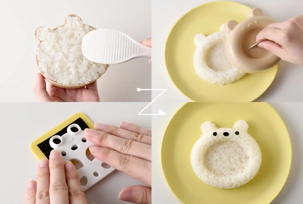 アーネストのデコ弁グッズブランド【nico kitchen(ニコキッチン)】から、お皿型のご飯が作れる「ぱくぱくポッケ くま」が発売します。おかずを乗せるとかわいいワンプレートごはんに!ごはん型と、海苔やチーズなどを型抜きできるカッターがセットになっており、誰でも簡単に作ることができます。当社のロングセラー商品「myフォルム あーん!ぱくっ!」(2018年発売)のミニサイズ版で、ご飯の量を100gに減らし、小さなお子さんでも食べやすいサイズにしました。 |