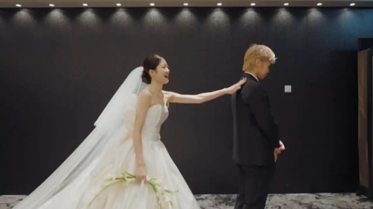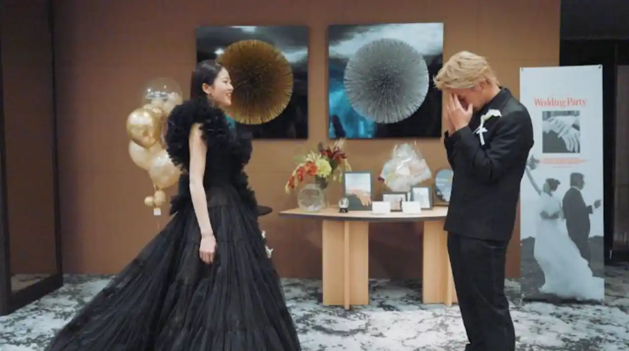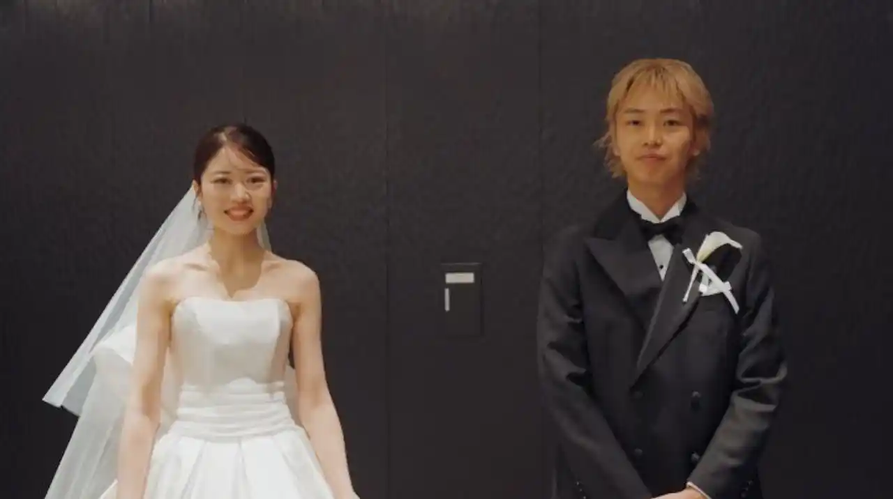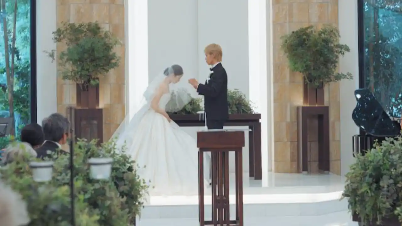 こうへいさんは遊び心のあるタキシードに身を包み、「この日のために染めました」という金髪で登場。あみさんは20着以上を試着した中から選び抜いた、背中側のデザインが帯のようになった美しいウエディングドレス姿で現れ、お互いの格好を知らないままファーストミートを迎えます。あみさんの姿を見て、「めちゃくちゃかっこいいじゃん…」と感慨深げなこうへいさん。あみさんは「こうちゃんもかっこいいよ」と口にすると、早くも目には涙があふれ、そっとハグ。「こうちゃんがスラっと立っている姿がめちゃくちゃかっこよくて、ぐっときてしまいました」と振り返ってくれました。 |