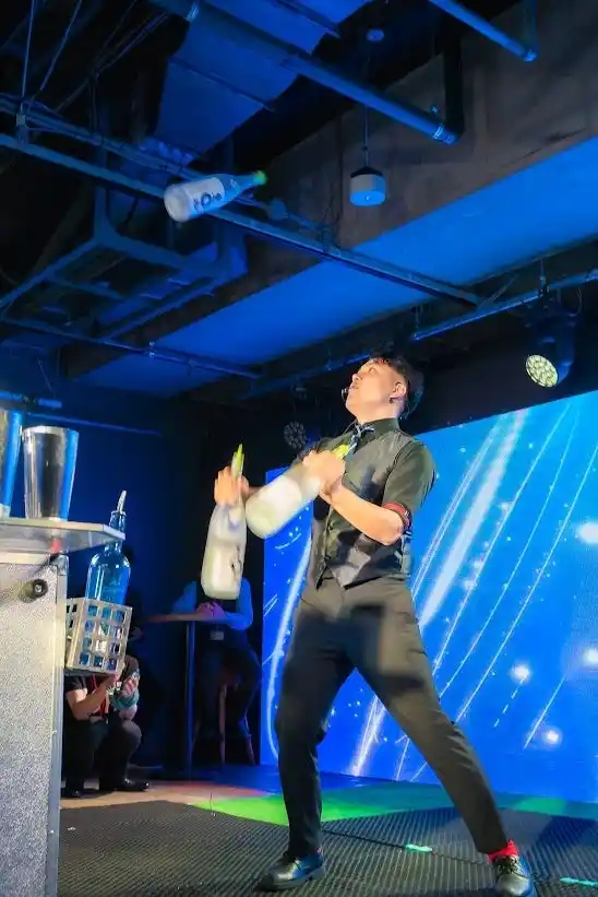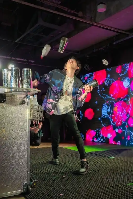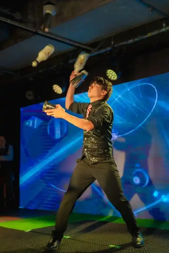Flair Bartending (フレアバーテンディング)はバーテンダーがボトルやシェーカー、グラスなどを用いた曲芸的なパフォーマンスによって、お客様を楽しませながらカクテルを作り提供するスタイルです。フレアバーテンディング の技術を有するバーテンダーを、フレアバーテンダーと呼びます。英語のスラングであるフレア(flair) は、主に「自己表現」と訳されてます。フレアーバーテンディングの名称は、TGI フライデーズ の講師、マイク・ワーナーによって用いられたとされます。 |