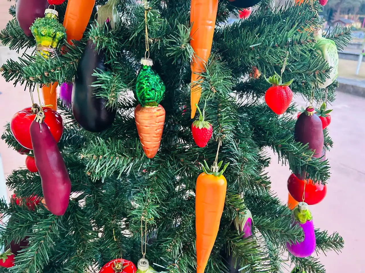 〈内容〉お野菜オーナメントがたくさん飾ってあるとってもかわいいツリーを飾っているよ♪ |