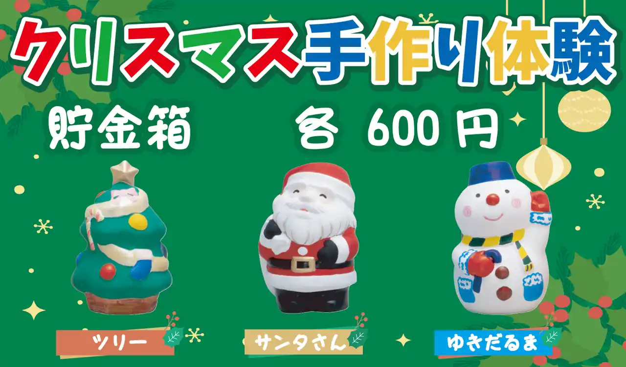 【クリスマス手作り体験】かわいい貯金箱をオリジナルカラーで塗ろう! |
