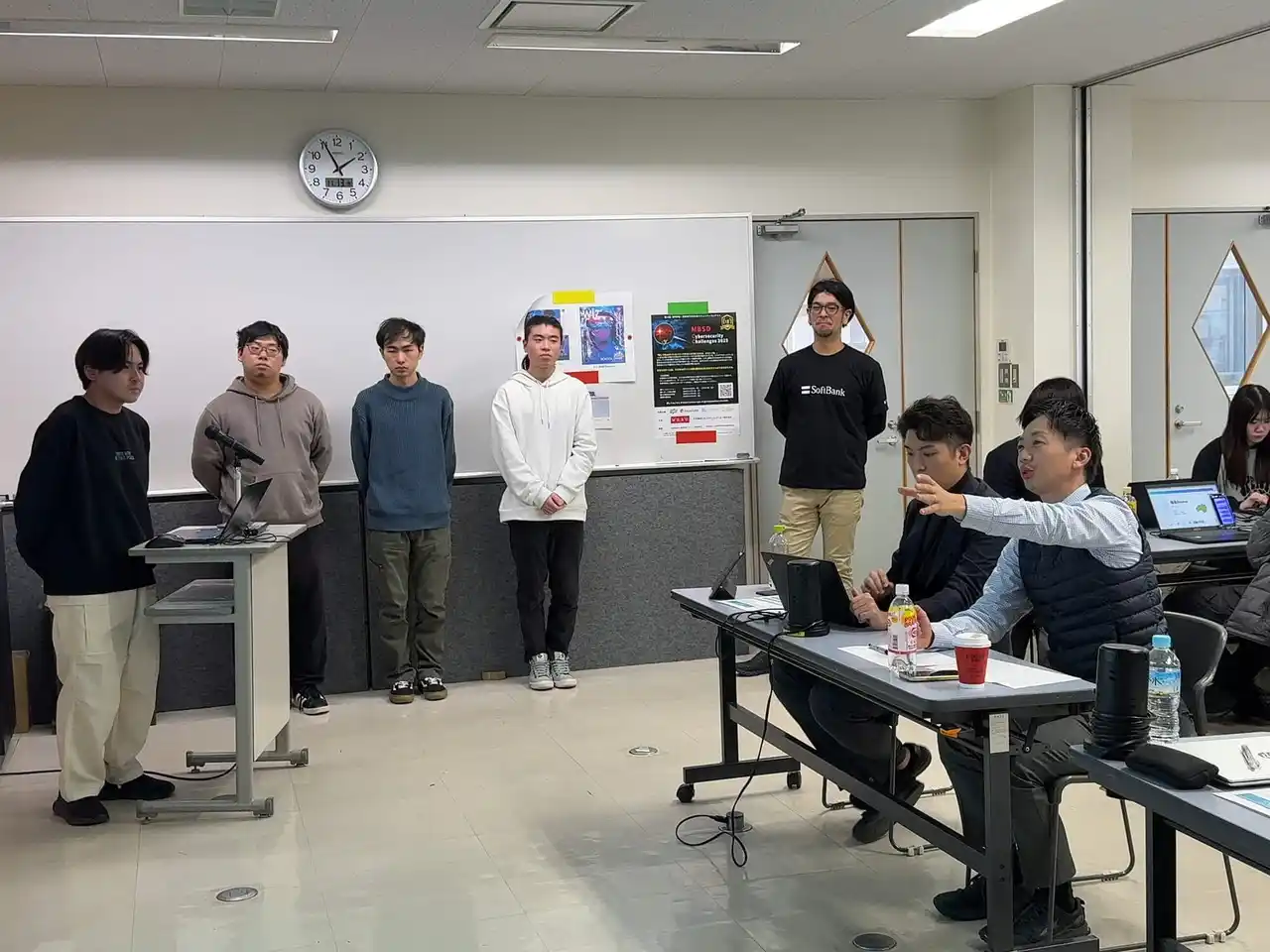 対象は高度情報工学科3年生22名。授業は毎週木曜日の1限~6限、全5回にわたって行われました。最終日の2025年11月13日には成果発表会が開催され、ソフトバンクの林氏をはじめとする審査員の皆様をお迎えし、各チームがプレゼンテーションを実施。学生ならではの自由でユニークな発想による解決策が多数発表され、参加した審査員の皆様にも高評価をいただきました。 |