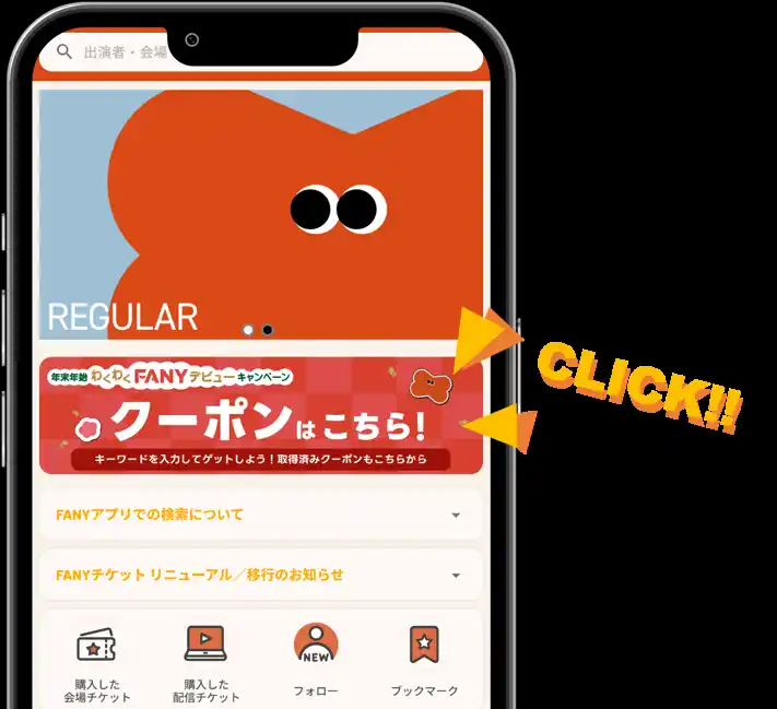 2.FANYアプリ内の「ホーム」に表示されるキャンペーンバナーをタップ。 |