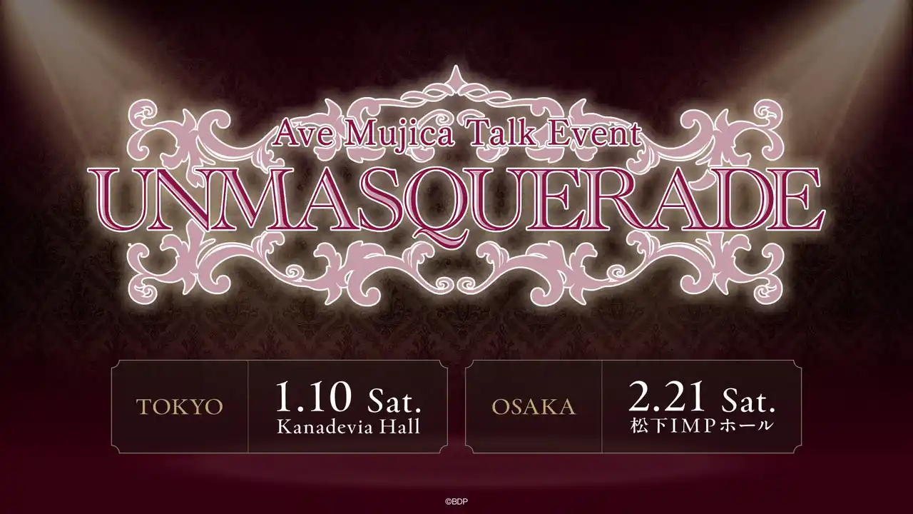 2026年1月10日(土)にKanadevia Hall、2月21日(土)に松下IMPホールにて、Ave Mujica トークイベント「UNMASQUERADE」を開催します。現在、チケット一般発売が受付中です。 |