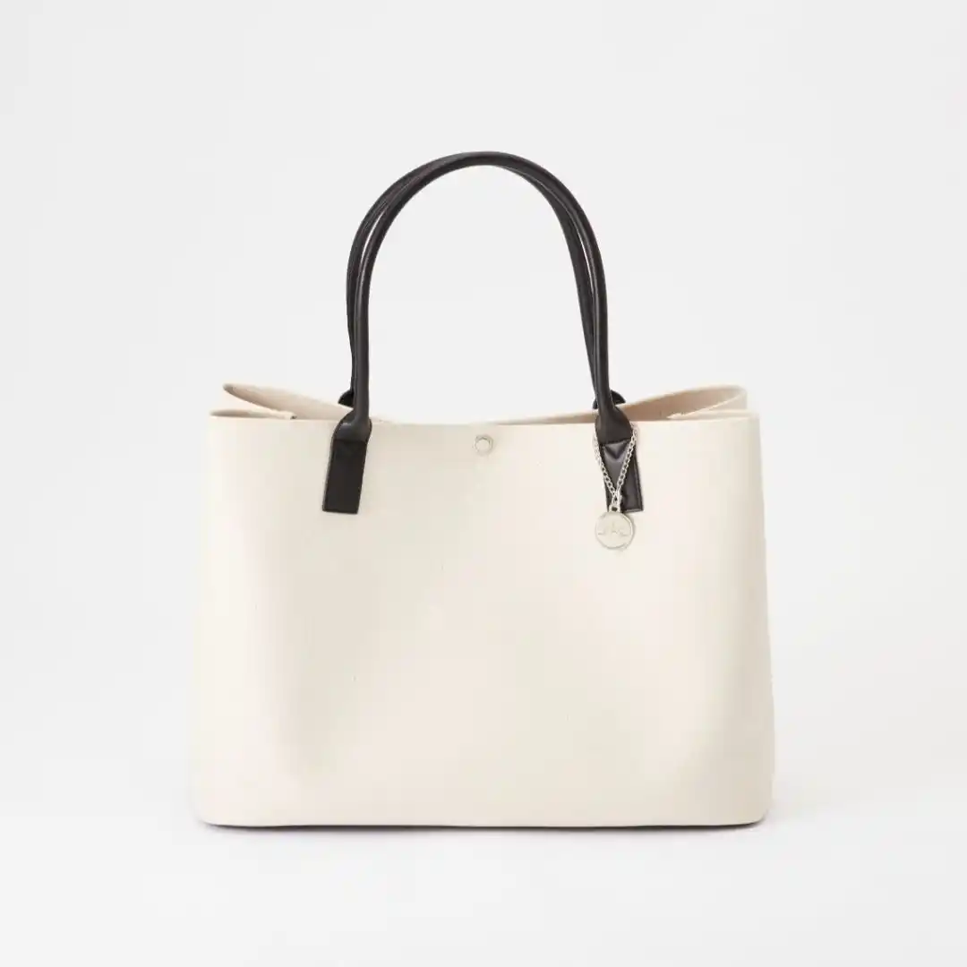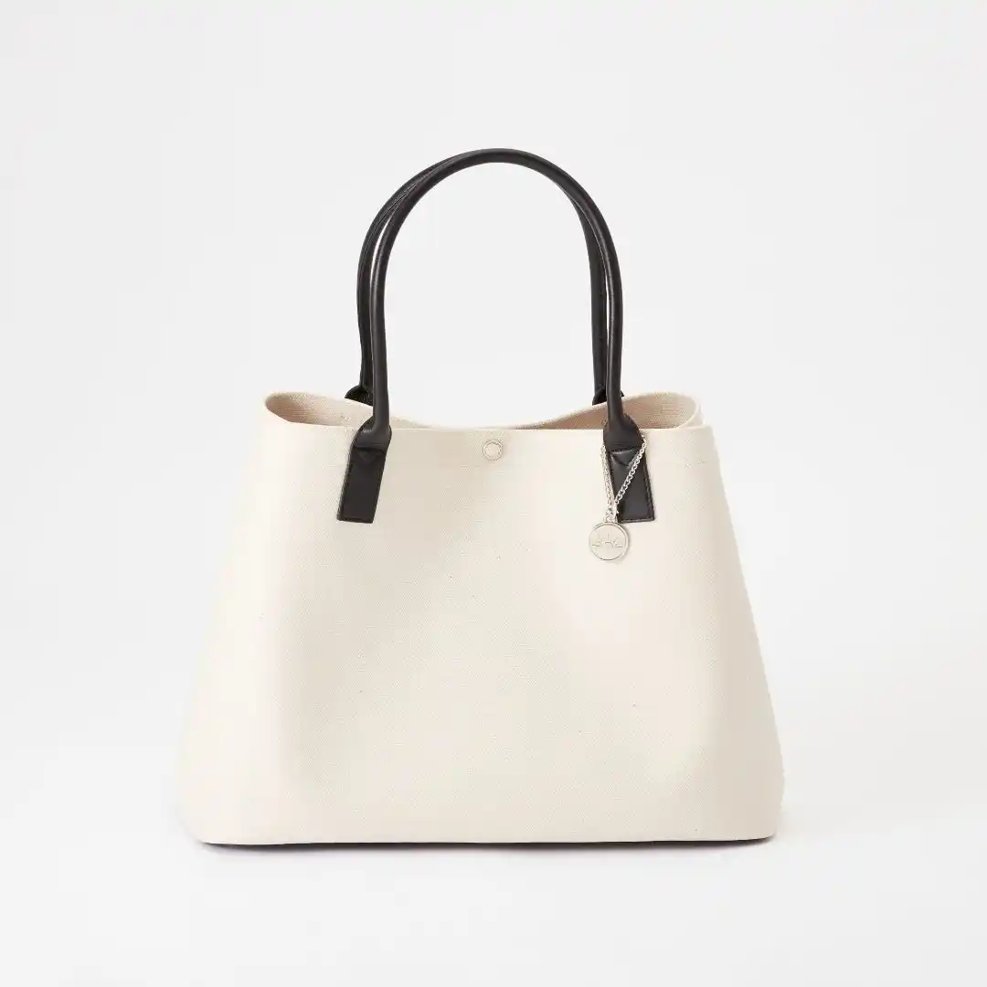 たっぷり入るのに驚くほど軽量。PVC加工したキャンバス素材で汚れにくい |