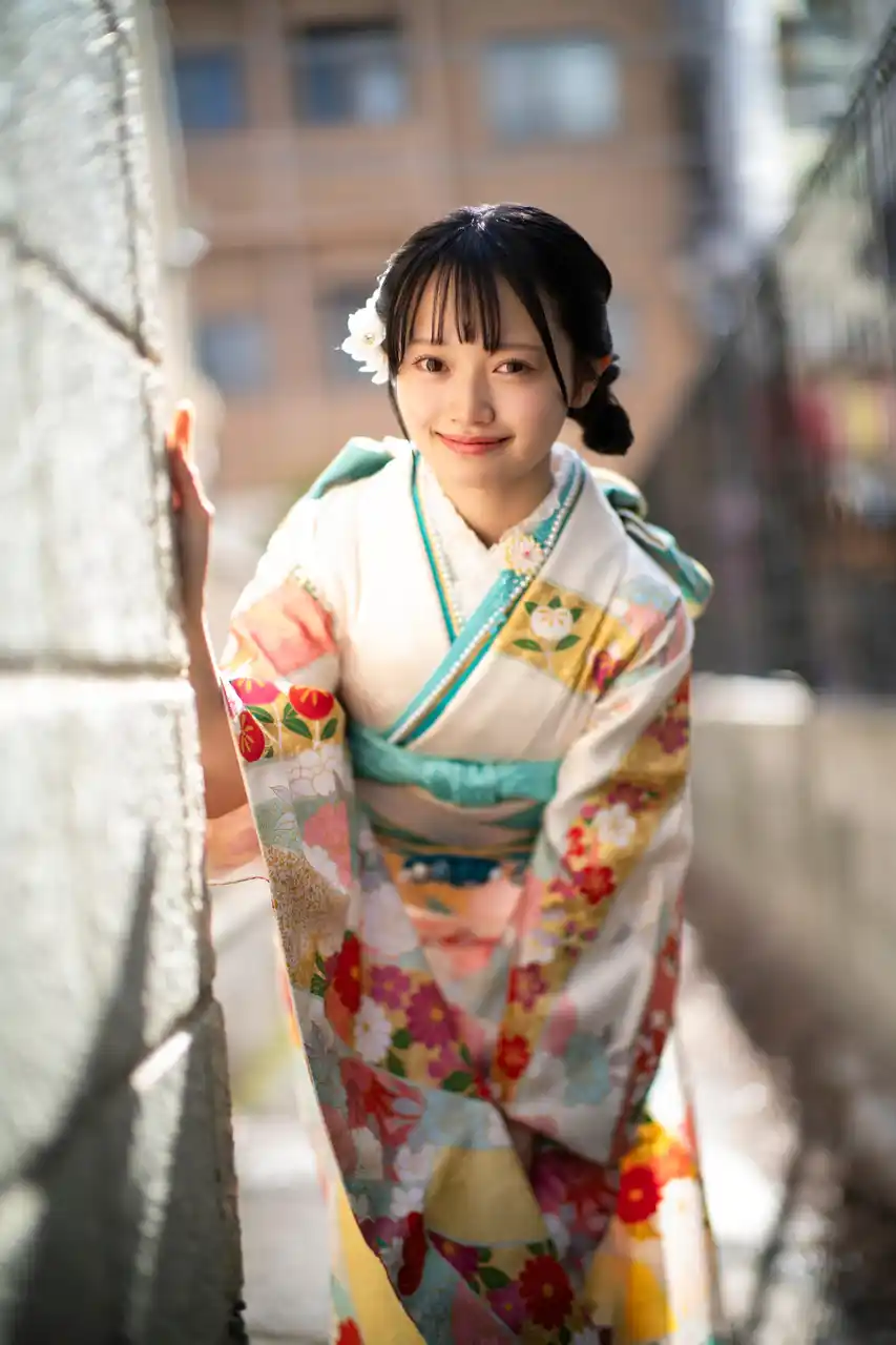 | 四期生の稲熊ひなは、浅草を舞台に印象的な白の振袖を纏って撮影。遊園地に行って射的を楽しんだり、おでんや揚げ饅頭を食べたり楽しく散策しながら、まだあどけなさの残る20歳の一瞬を切り取った。 | |||