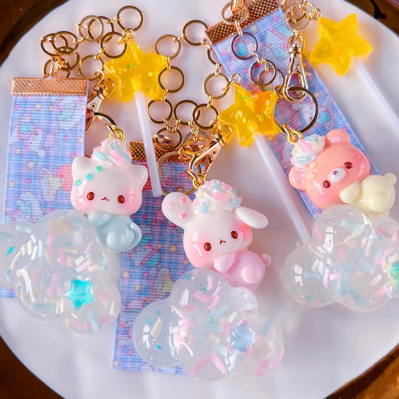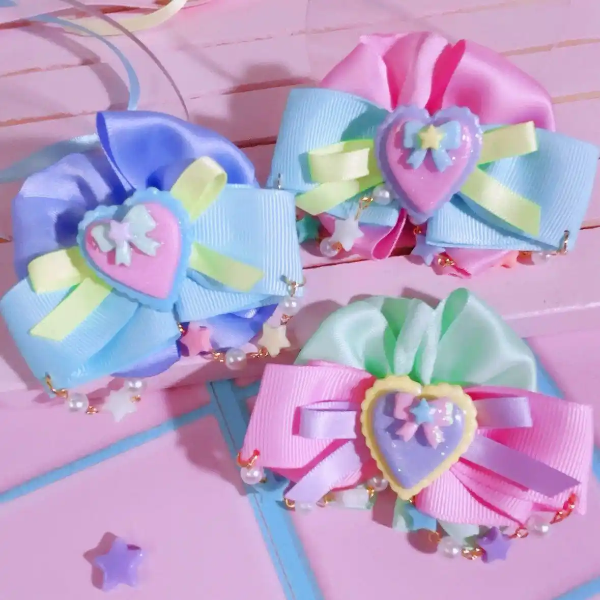 粘土、リボンなどの異素材を組み合わせたPOPなヘアアクセサリーです!パステルカラーで彩られたゆめかわファッションのマストアイテムです! |