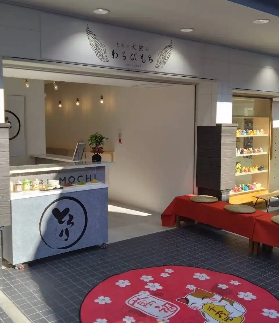 1日最高600個販売する、とろとろ食感の「生わらびもち」が看板商品の和菓子店「とろり天使のわらびもち」は2020年に大阪府に初出店し、現在は日本全国だけでなく、海外進出もしています。とろとろ食感のわらびもちは、老若男女問わず人気で手土産に最適です。また、アルバイトの女子高校生が「とろとろすぎて、ストローで飲めちゃうのでは」と発想し誕生した「飲むわらびもち」は映える見た目と新食感が話題となり、1日最高500杯販売する人気メニューです。 |