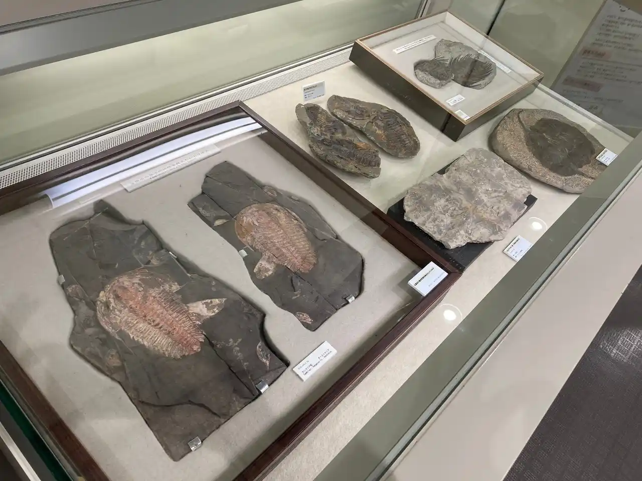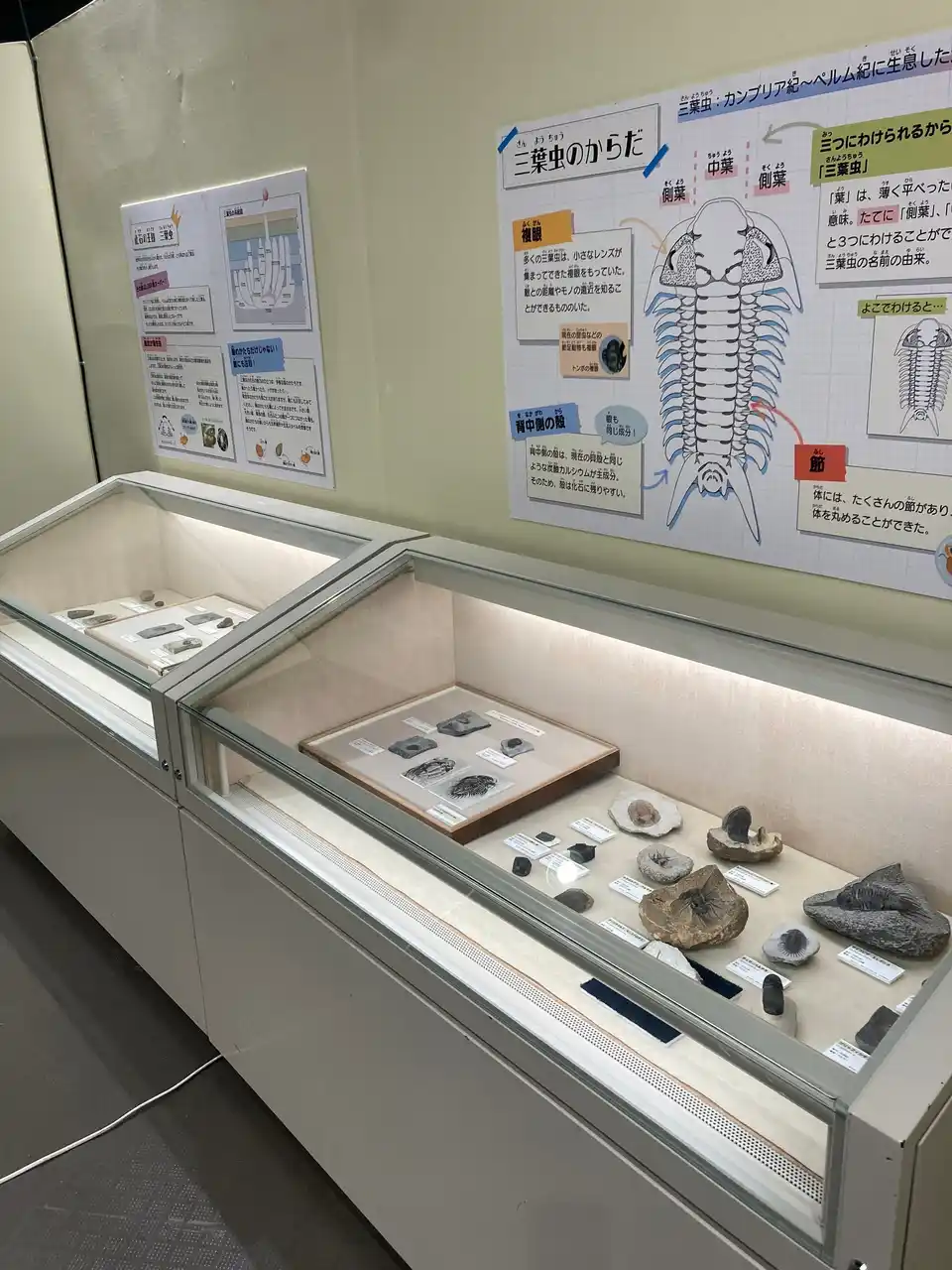 約150点の化石やレプリカ、復元模型を展示。中には最新の研究成果から復元した詳細な三葉虫の模 型も!一部の化石には触れます! |