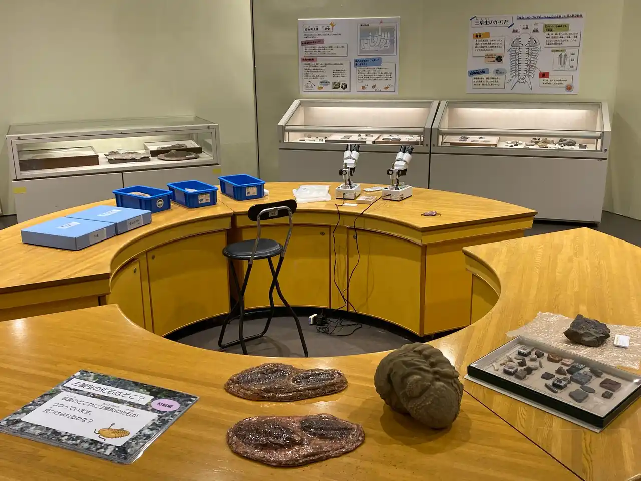 化石やレプリカに触れたり観察三葉虫コーナー |