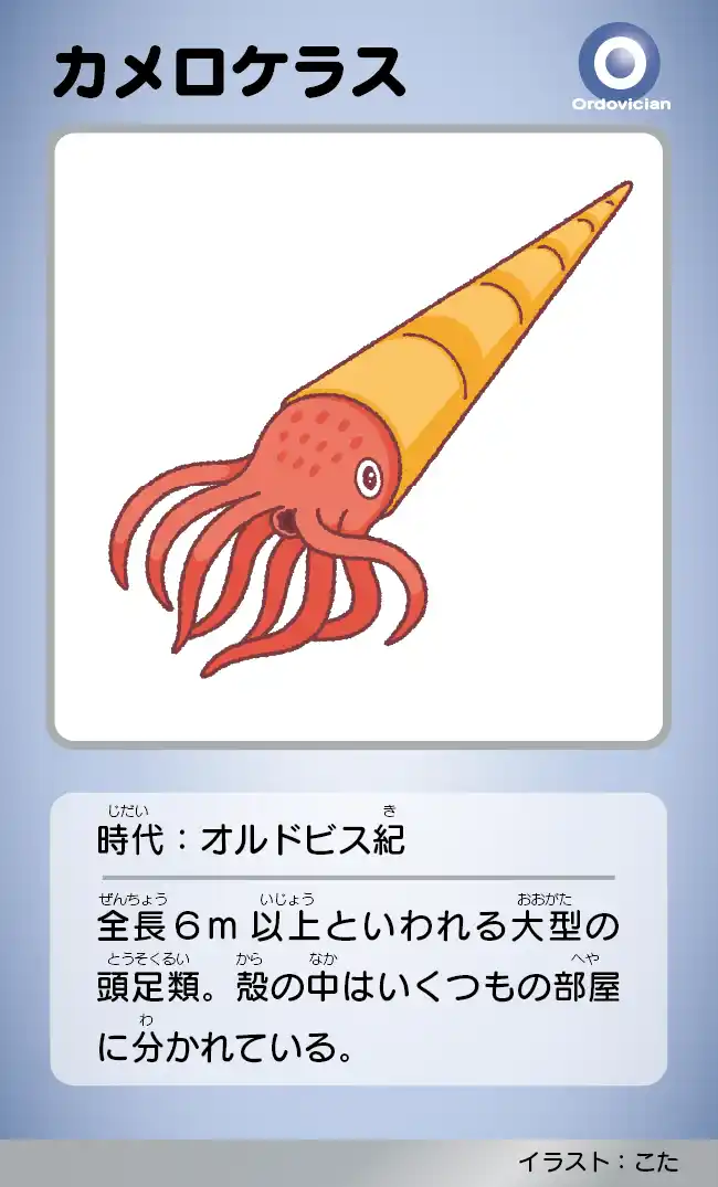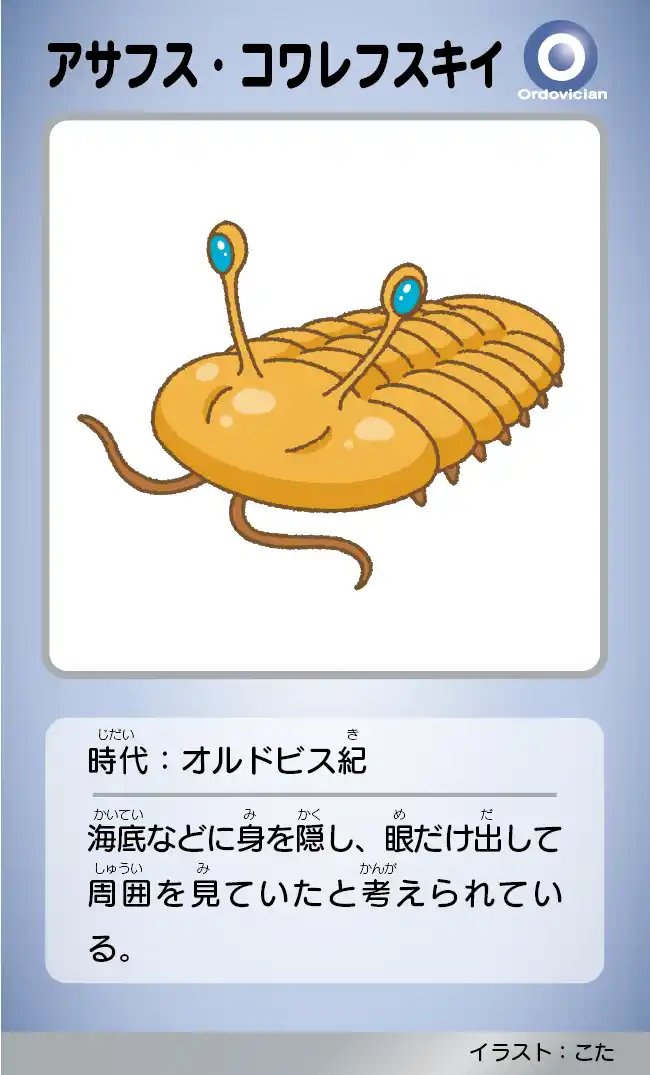 古生代探検報告書(ワークシート)を完成させると絵本作家こたさんのイラストを使用した「古生代の生きものカードをプレゼント!(1日1人1枚:8種類) |