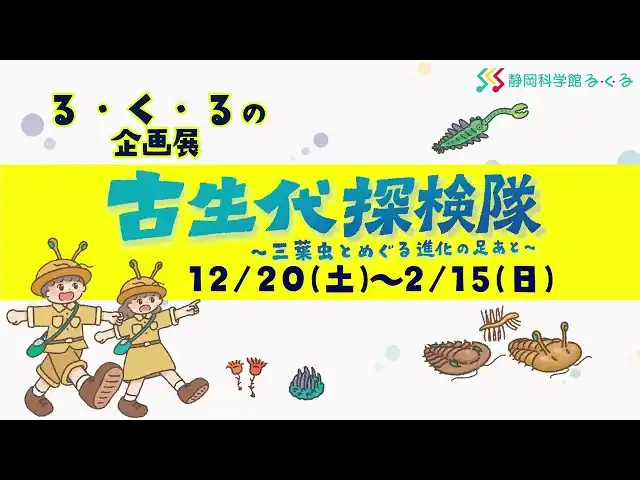 本企画展では、「進化の足あと」として古生代の生物の化石や地球環境の変化を、案内役の三葉虫とともに静岡科学館のスタイルである体験型の展示構成で紹介します。古生物学分野に親しみながら、来場者自身がその後も関心を持ち続けるきっかけを提供します。 |