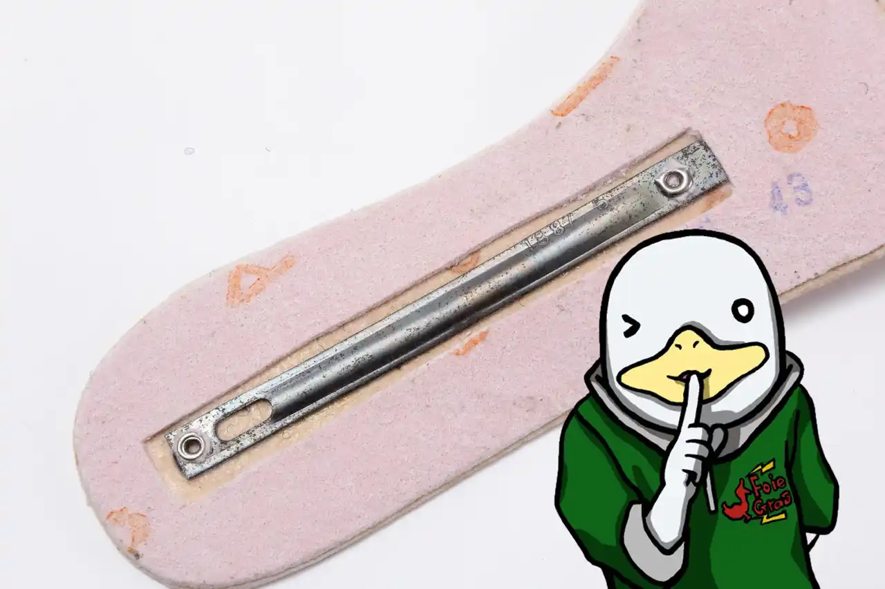 スチールシャンクはプロテクト面だけでなく、ライディング時にステップ荷重する際にソールの変形を抑えることができるので、ダイレクトな操作感に貢献します。シャンクの入っていないライディングシューズは実は多いものなので、ここは注目のポイントとなっています。