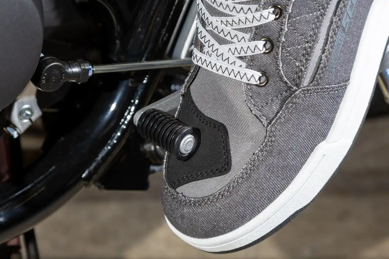 ライディングシューズには欠かせないシフトパッドは左右共に装備することで“いかにもバイク用”といったテイストを極力廃し、街歩きでも悪目立ちすることなく、どんなシーンにも馴染みます。 |
