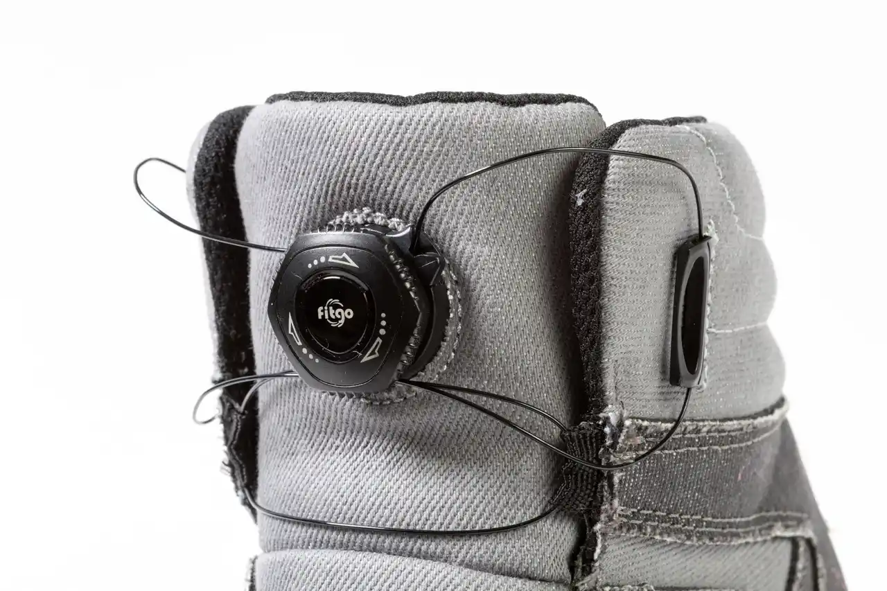 さらに、ハイカットのスタイルとダイヤル式シューレースの採用により、衝撃を受けた際に靴が脱げるのを防ぎ、安全性を高めています。 |
