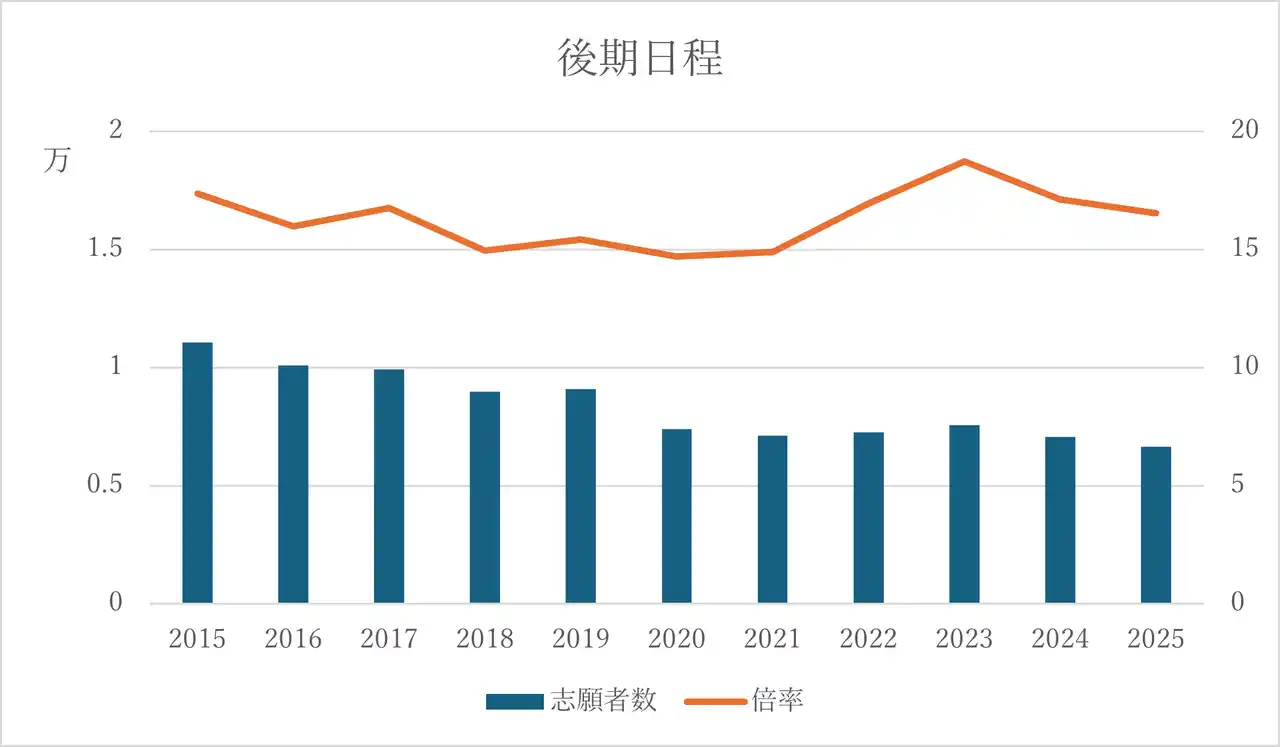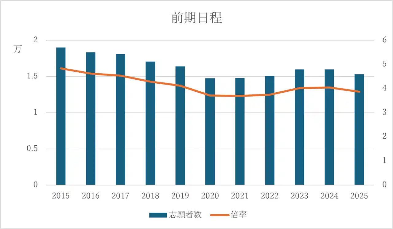 | 2025年度実質倍率では前期約4.3倍、後期約19.2倍と高水準が続いています。 | |||||