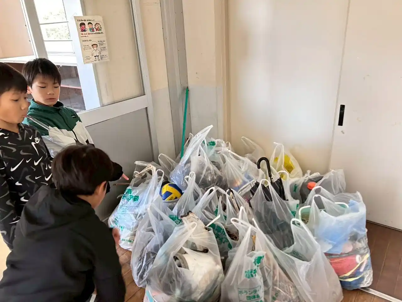分別された漂着ごみの一部は、来年2月に予定されている学習発表会に向けた海洋学習の教材として活用される予定です。 体験で終わらせず、学びとして整理し、表現へとつなげていくESDのプロセスが実践されています。 |