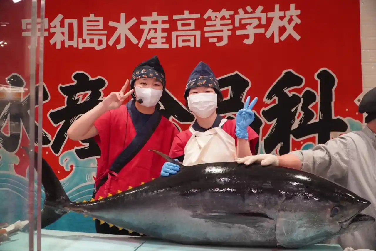2.宇和島水産高校「フィッシュガール」による愛媛県産養殖生本まぐろ解体ショー |
