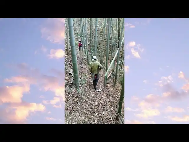 ▲イベント参加の子どもも竹林整備 |