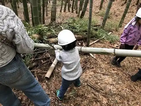 イベント開催は株式会社nuucoto(東京都稲城市、太田香奈代表取締役)に業務委託し、認定NPO法人JUON (樹恩)NETWORK(東京都杉並区、生源寺眞一会長)や研究者などと連携し里山の保全やモニタリングを進めてきました。職員や利用者、近隣住民による森林整備ボランティアを育成し、孟宗竹が生い茂り枯れ落ちた広葉樹の再生を目指し整備活動を継続しています。 |