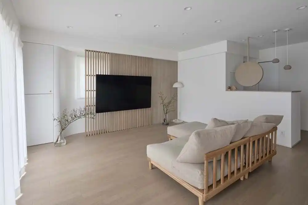 LDKのどこからでもテレビを見られるレイアウトに。角部屋ならではの採光を活かしたリノベーション |