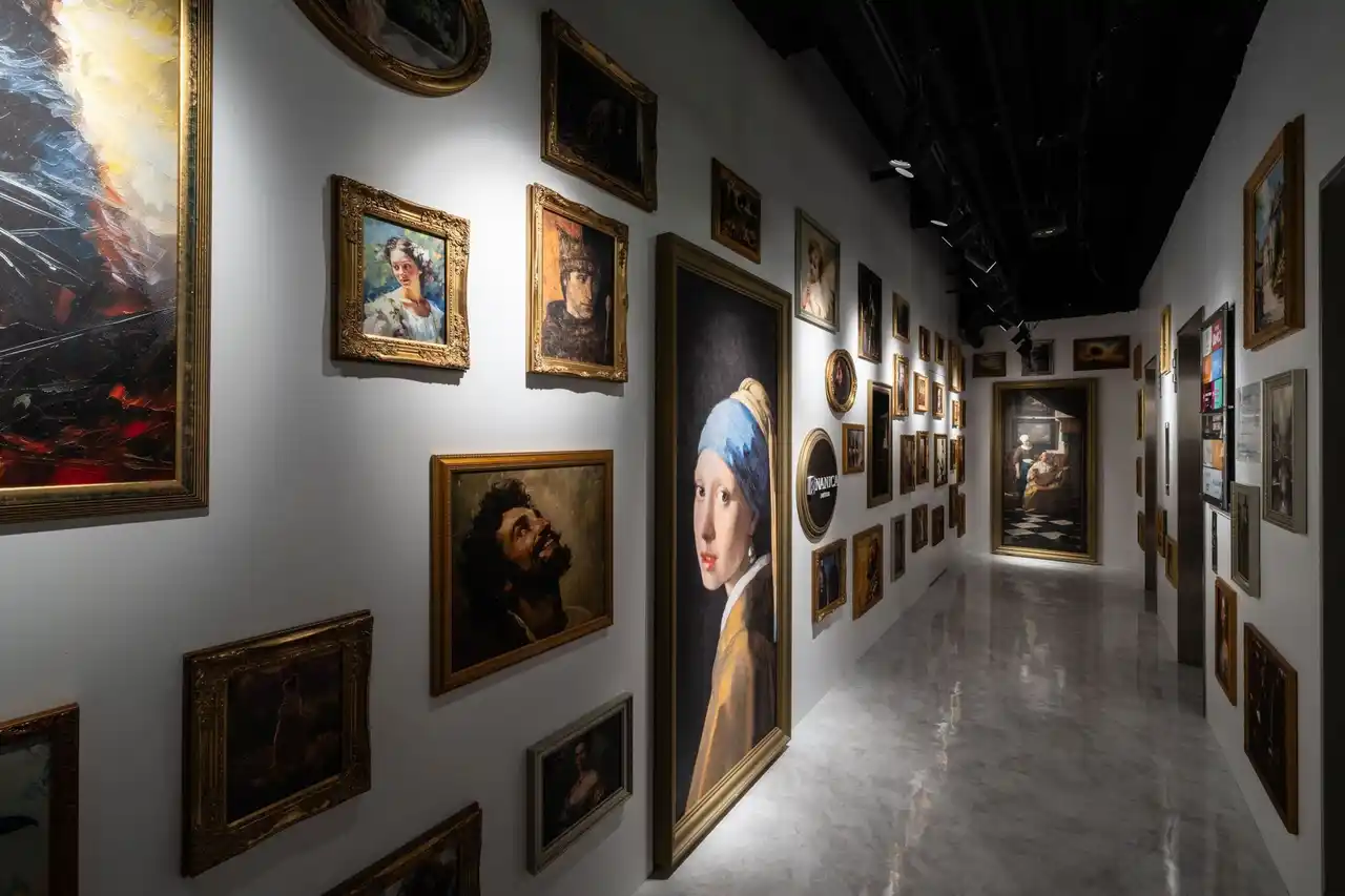 施設入口には壁一面に無数の絵画が並び、その中に隠された“秘密の入り口”を見つけることで、来場者は魔法世界へと導かれます。エントランス空間では、各コンテンツのチケット販売のほか、オリジナルドリンクや限定グッズの購入が可能です。 |