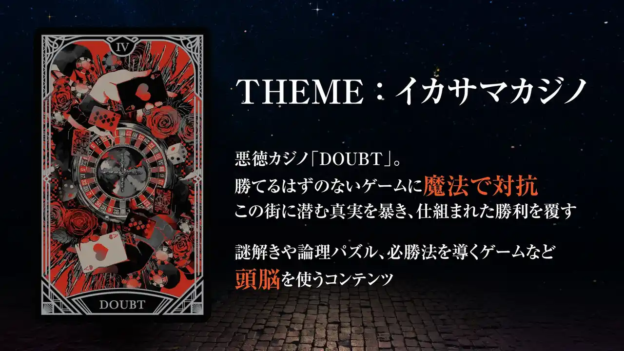 魔力を発現させたばかりのあなたは、噂の闇カジノへ潜入捜査をすることに。イカサマやトリックを見破り、闇カジノを壊滅させよう! |