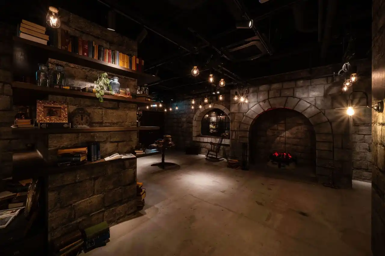 魔法世界へと繋がるのは、「暖炉」を模した隠し扉。扉の先には、現実世界とは一線を画す没入空間が広がり、その空間を舞台に「魔法を解き明かす」をテーマとした5つの謎解きコンテンツが展開されます。 |