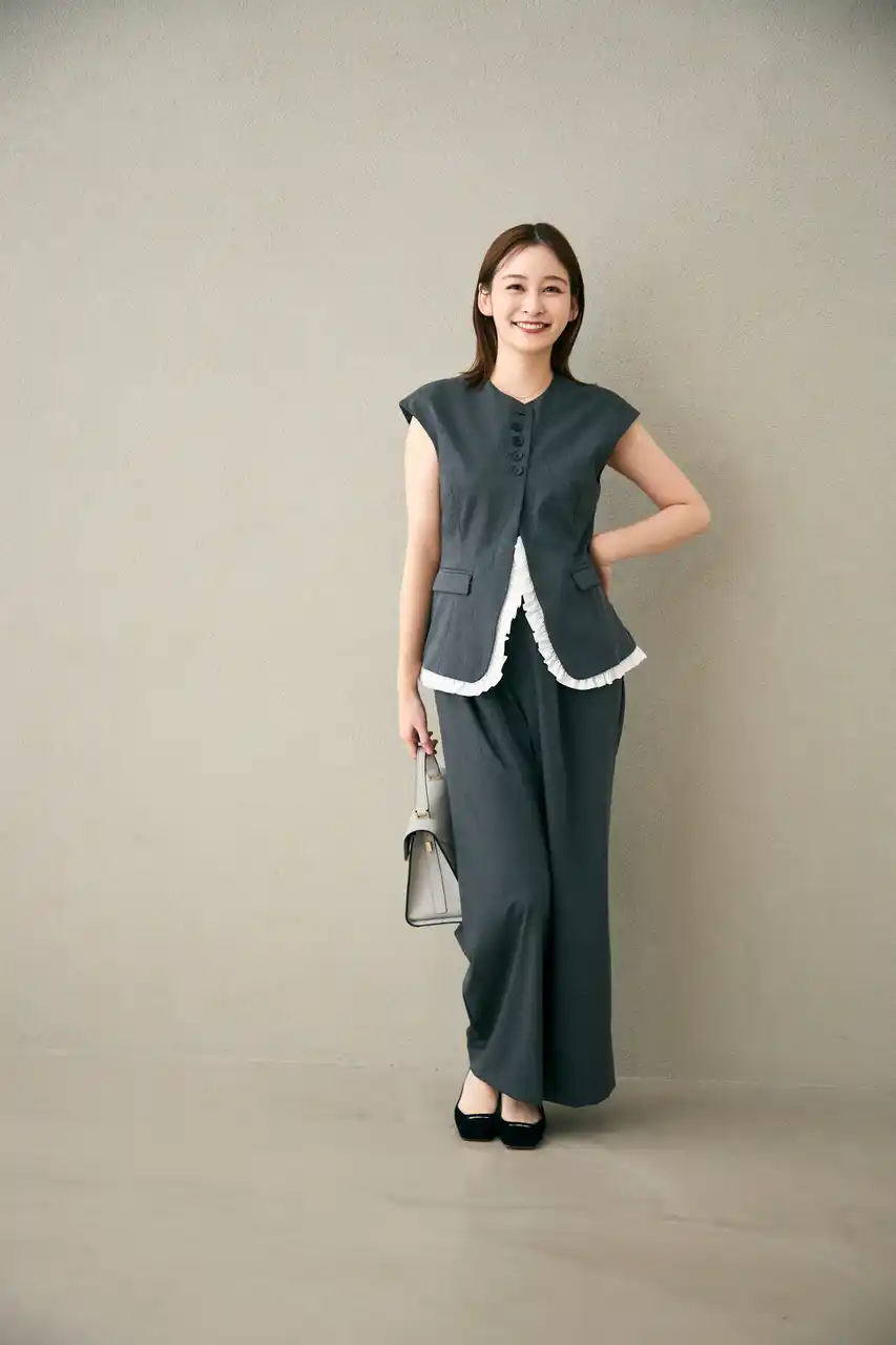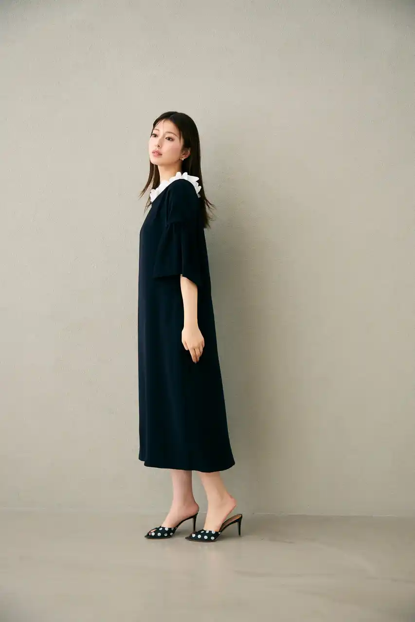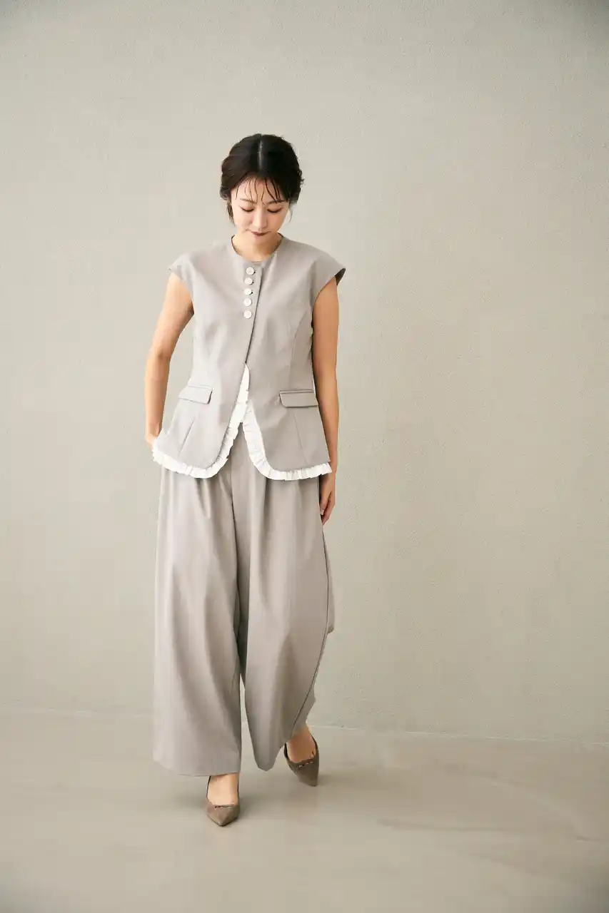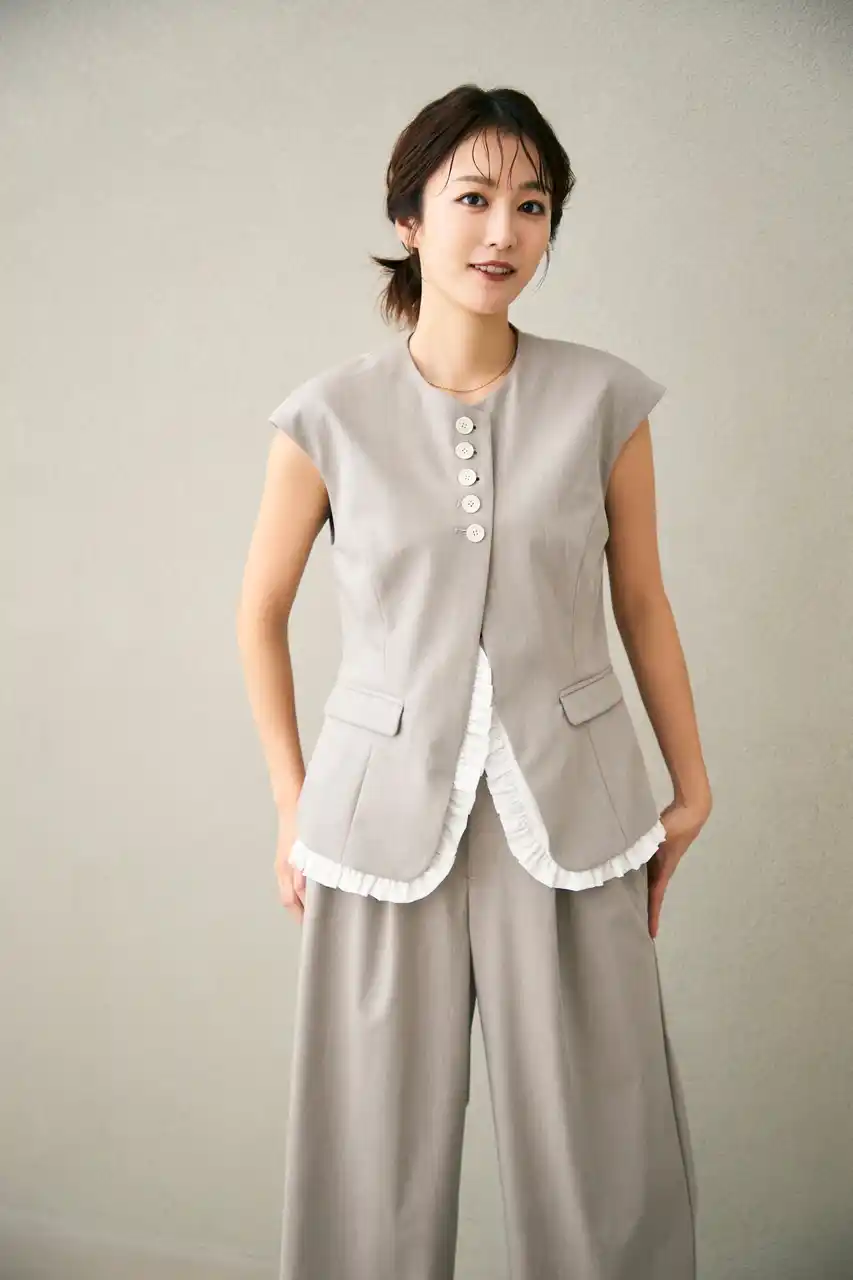 襟元にフリルがあるから、髪型が決まらなくても顔まわりを華やかに見せてくれるのもうれしい。 |