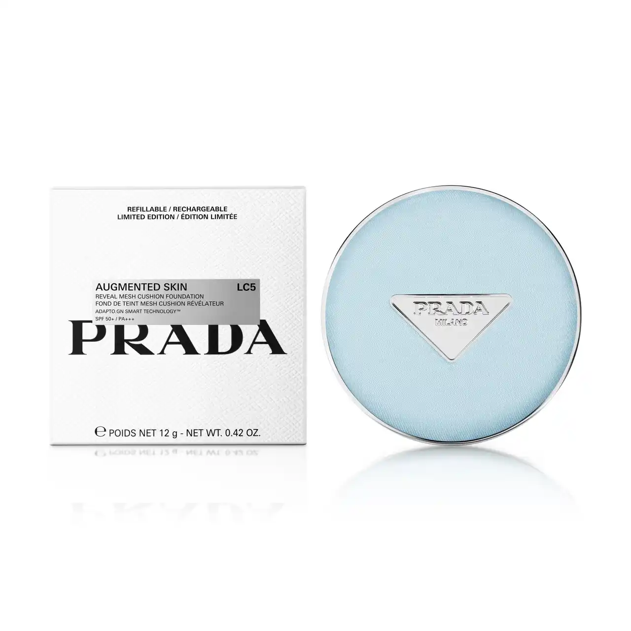 ブランドを代表するファブリックのひとつである であるRe-Nylonを贅沢に施したアイコニックなパッケージ。限定デザインでは、ブランドのシグネチャーカラーの一つであるライトブルーを纏って登場します。 プラダの洗練性をデザインに落とし込んだとともに、常に新しいチャレンジを通して常識を再定義してきたモダンな精神も象徴している本パッケージ。柔らかながらも華やかさを併せ持つライトブルーは、落ち着いた印象を与えつつも確かな存在感を放ち、日常に鮮やかな彩りをもたらします。 |