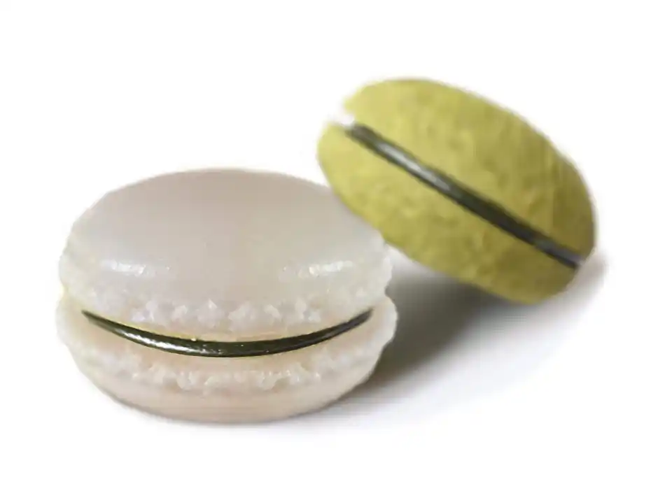 数種類の森のめぐみを使用。着色料不使用で、その植物が持つ色のみで色付けをしたマカロン。 |