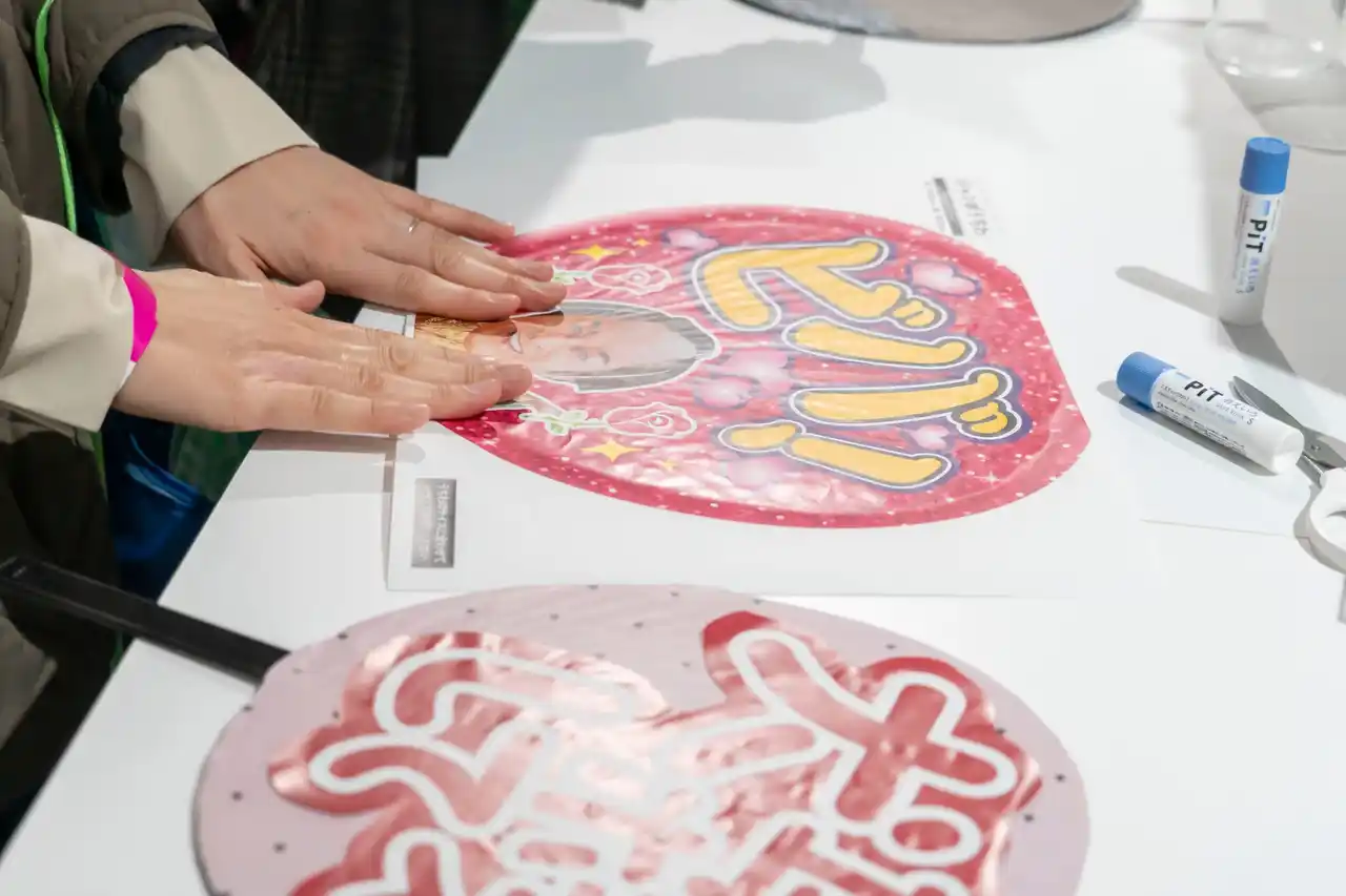 「あそべるファミペイ&ファミマチャンネル」では、ファミチキ100円クーポンのつかみ取りを実施。お箸で紙のクーポンをつかむ仕様に、滑って何度もチャレンジする姿や、コツをつかんで91枚も獲得する猛者も現れ、ブースは大いに盛り上がりました。「推し活ファミマプリント」では、店内マルチコピー機ファミマプリントで、実際に推し活グッズ制作を体験いただきました。