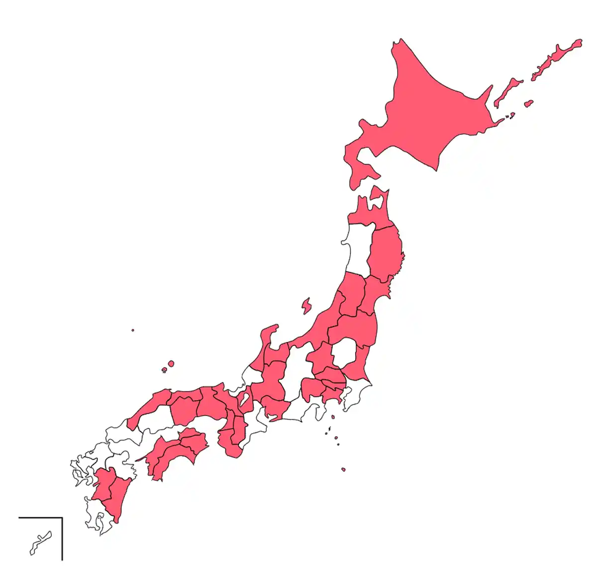 蒲郡市(愛知県)、南知多町(愛知県)、守山市(滋賀県)、甲賀市(滋賀県)、笠置町(京都府)、泉大津市(大阪府)、柏原市(大阪府)、東大阪市(大阪府)、岬町(大阪府)、三木市(兵庫県)、川西市(兵庫県)、三田市(兵庫県)、生駒市(奈良県)、宇陀市(奈良県)、川西町(奈良県)、三宅町(奈良県)、和歌山市(和歌山県)、北栄町(鳥取県)、松江市(島根県)、飯南町(島根県)、鏡野町(岡山県)、阿南市(徳島県)、藍住町(徳島県)、東かがわ市(香川県)、松山市(愛媛県)、高知県、宿毛市(高知県)、熊本市(熊本県)、延岡市(宮崎県) |