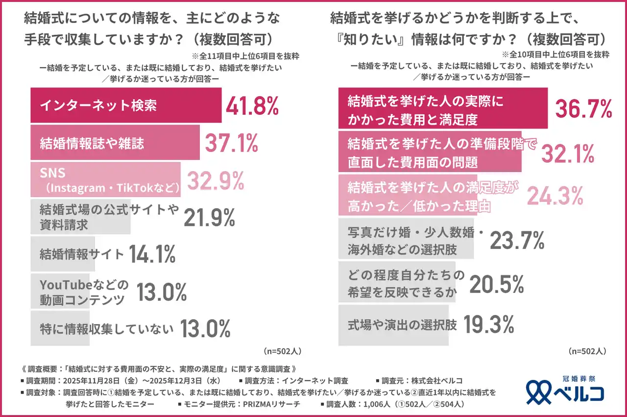 結婚式の情報収集はインターネット、結婚情報誌が中心。知りたい情報は「費用と満足度の実例」 |