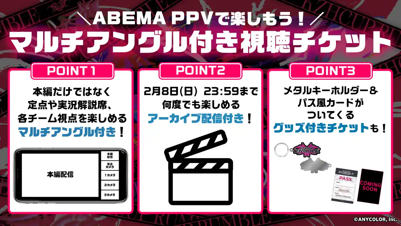 | 「マルチアングル付き視聴チケット」では通常の本編配信に加え、 | |||||