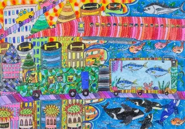 「ドコモ未来ミュージアム」は、未来をつくる子どもたちの夢や未来を応援するため、ドコモが2002年から毎年開催している創作絵画コンクールです。本コンクールでは、例年子どもならではの自由な発想による、明るい未来や夢を描いた作品が多く応募されますが、今年は特に、地球とそこに暮らす仲間たちを愛おしく大切に思う気持ちがあふれる作品や、社会にあるさまざまな課題を優しい気持ちとコミュニケーションの力で解決に導くような作品が多く集まりました。 |