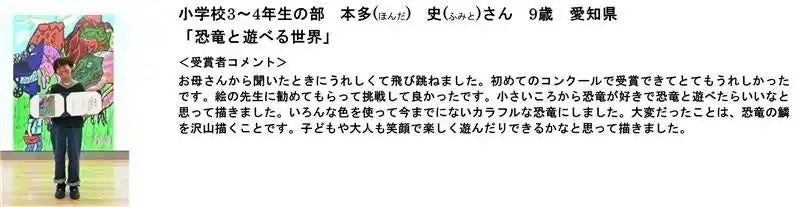 本多 史(ほんだ ふみと)さん 9歳 愛知県 |