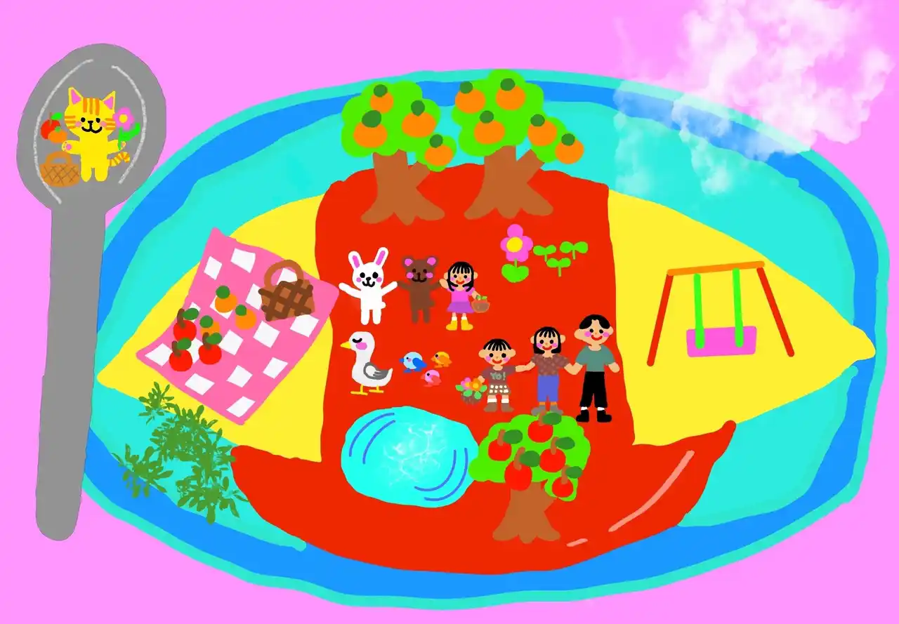 一番大好きな食べ物オムライスの上で、みんなでピクニックをしました。 |