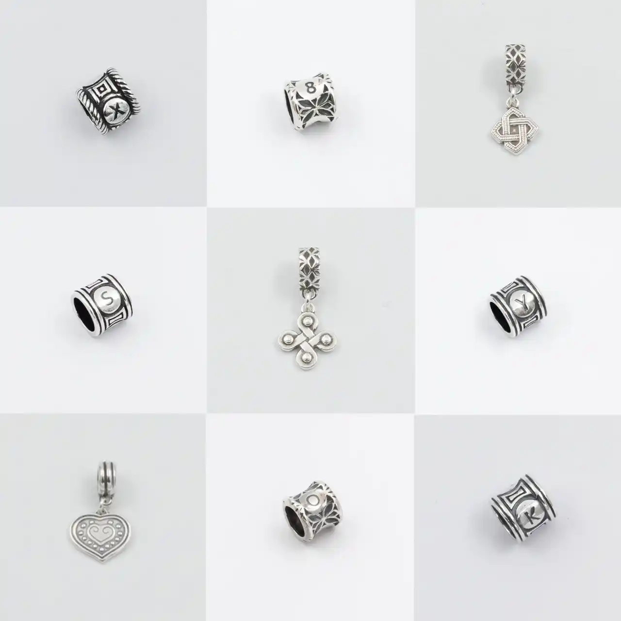 前の持ち主に大切にされていたそれぞれのチャームは、ヘルシンキの工房で一つひとつ丁寧に修復され、再び美しい輝きを取り戻しています。チャームのサイズは約1cm~で、古代のシンボル、アルファベットや数字など、さまざまな種類をご用意しております。 |