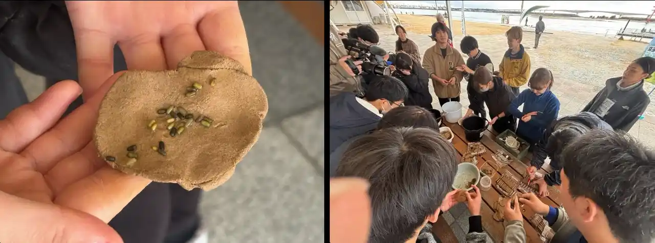 ◎海草アマモの種を粘土で包み、海底へ投下 |