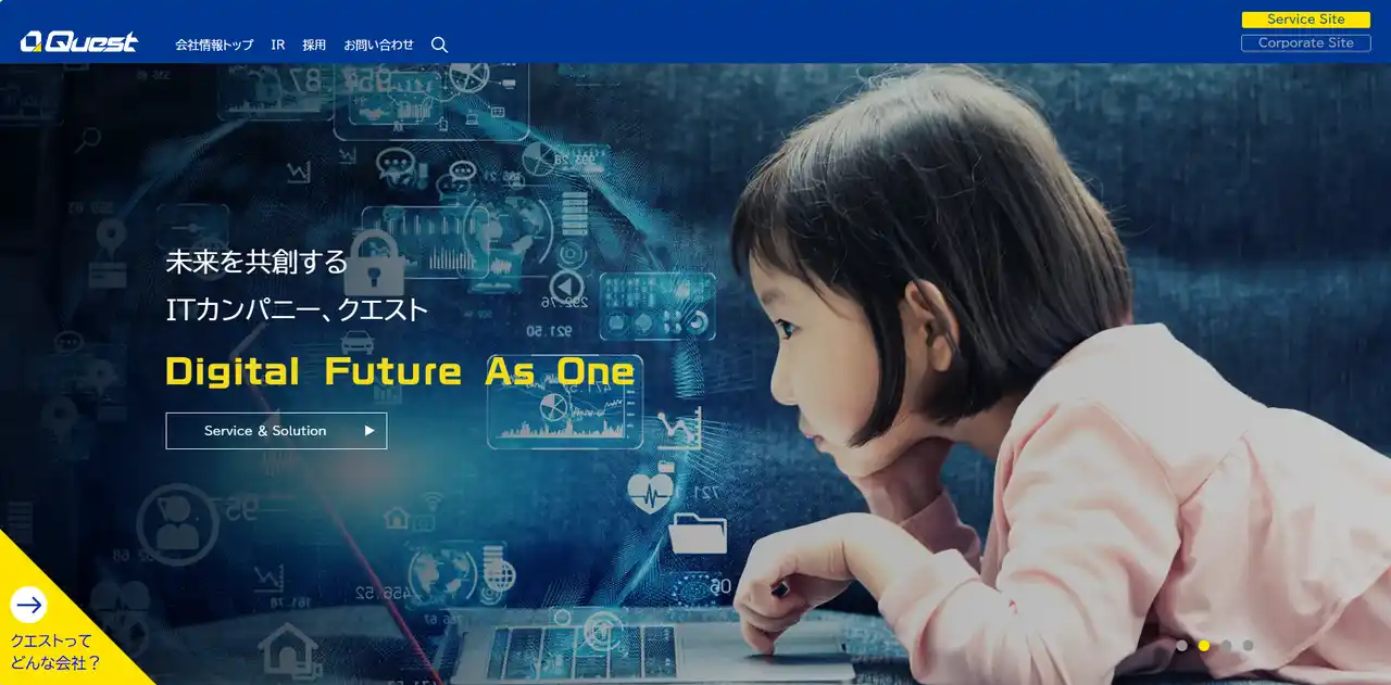 クエストの社名は「探求」「冒険の旅」を意味する“QUEST”に由来。デジタルの未来をお客様と探求し共創するITカンパニーです。 |