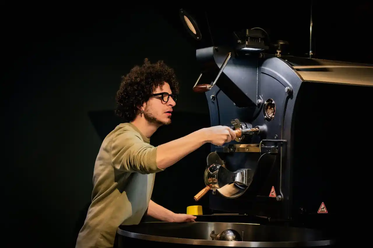 イタリアの焙煎所にて焙煎を行う弟のピエトロ |