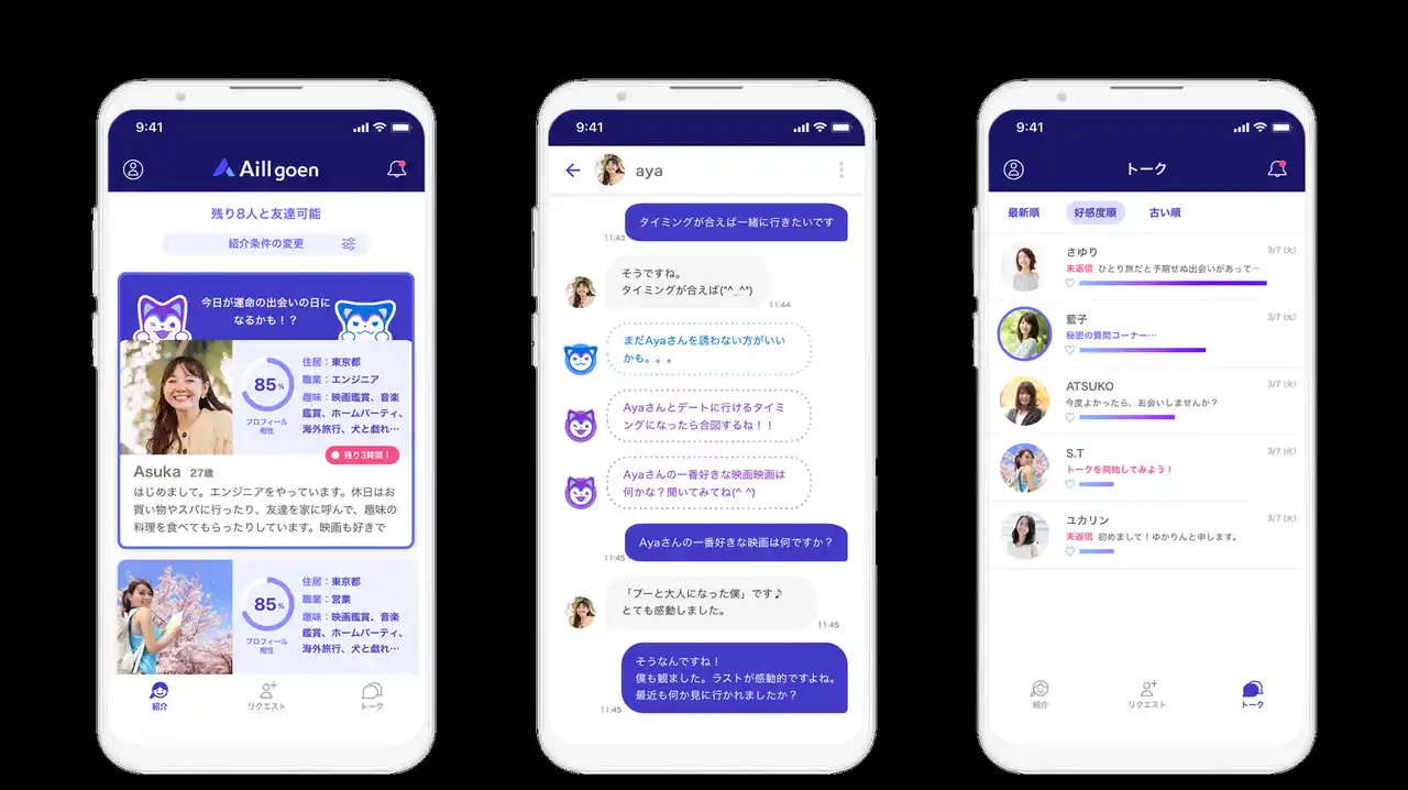 Aill独自のAIが共通の友達のように2人の関係構築をサポート |