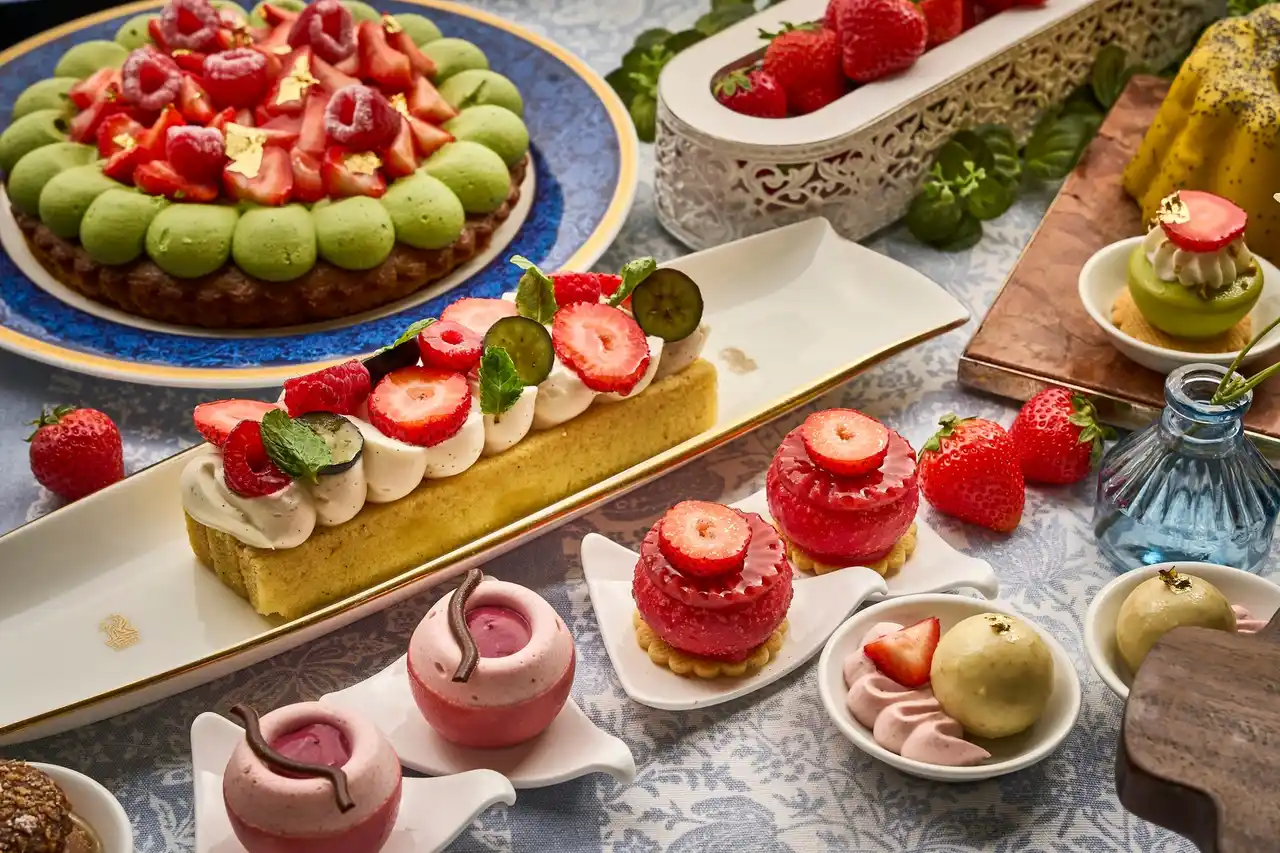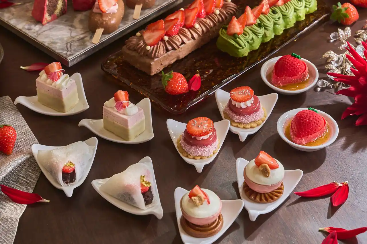 ストロベリードレッシング」、「ビーツといちごの冷たいブルーテ」など、苺を使った料理や、お客様の目の前で仕上げる「ホワイトボロネーゼのリングイーネ」などをご用意。さらにグラタンやビーガン料理など、幅広いラインナップで皆様をお迎えします。苺をふんだんに取り入れたスイーツでは「ストロベリームースとオレンジブロッサムシャンティー」、「ストロベリークリームタルト」などをご提供。さらにアフタヌーンスイーツブッフェ「ストロベリーアフタヌーンブッフェ-サロン デュ ストロベリー-」で登場する、甘酸っぱいストロベリースイーツと相性抜群のダークチョコレートを使ったチョコレートファウンテンもお楽しみいただけます。 |
