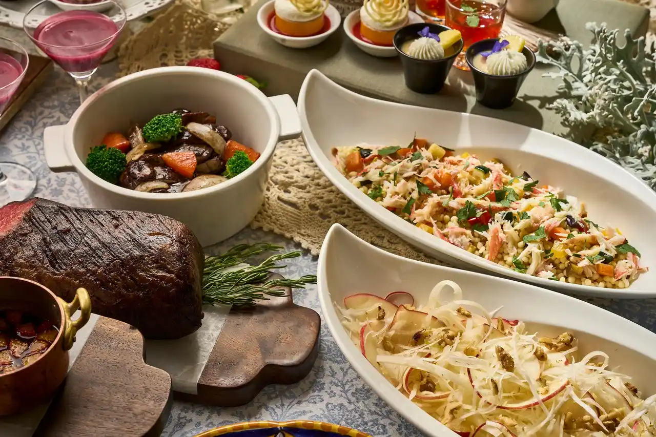 1階イタリア料理「スプレンディード」では、ストロベリーの魅力をたっぷり味わえるバリエーション豊かな「ウィンターストロベリーランチブッフェ」をご用意しました。赤ワインとストロベリーのソースを添えたサーロインのローストビーフや、ストロベリードレッシングがアクセントとなる「ハムとトレヴィスのサラダ
