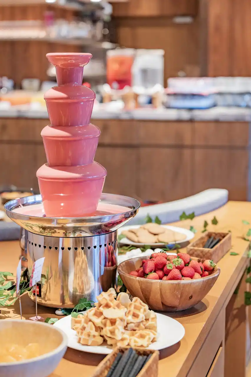 前回好評だったチョコファウンテンが今回も登場。甘い香りに包まれながらチョコレートをディップし、さらにデコレーションまで楽しめる注目のコンテンツ。 |