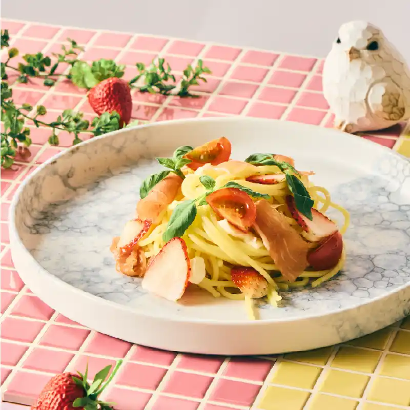 いちごと生ハムの温製カプレーゼ風パスタ 2,300円(単品)/ 1,800円(オプション) |