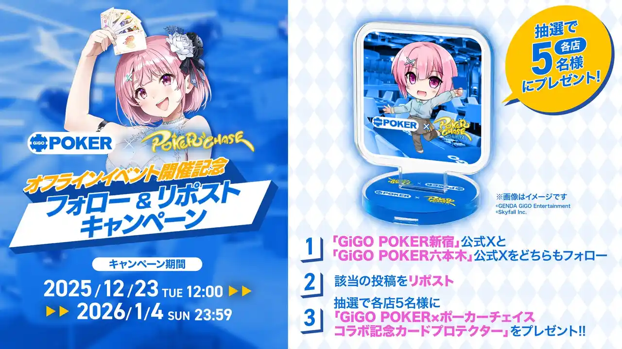 さらに、2026年2月21日(土)・2月22日(日)の2日間では、「GiGO POKER新宿」で『ポーカーチェイス』オフラインイベントも開催いたします。 |