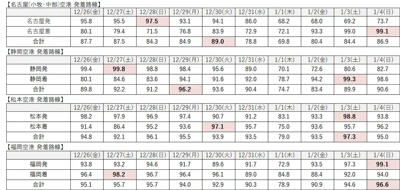 | 2025年度年末年始期間[2025年12月26日(金)~2026年1月4日(月)]の12月22日(月)時点での | |||